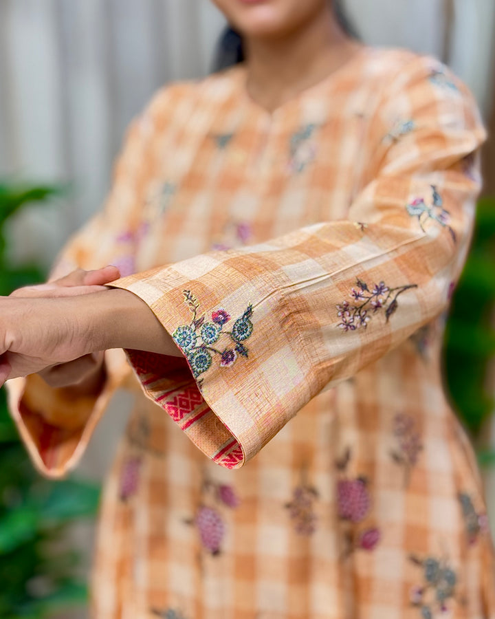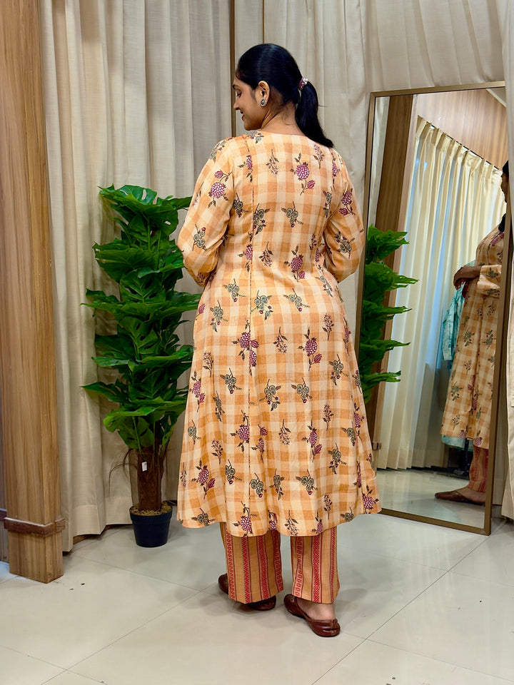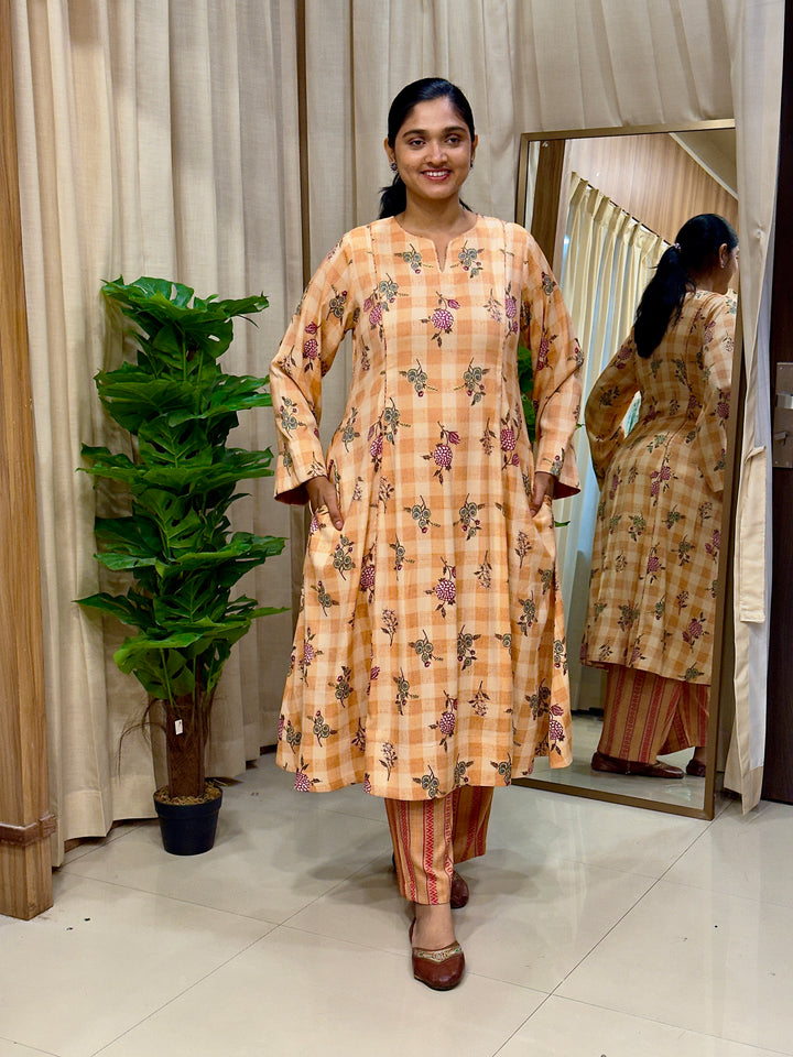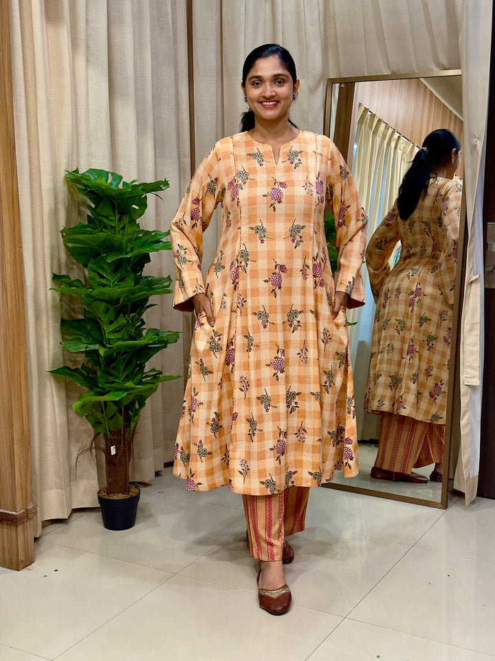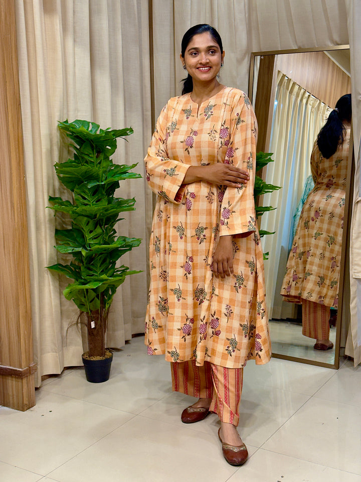 Orange Floral Cotton Kurta Set